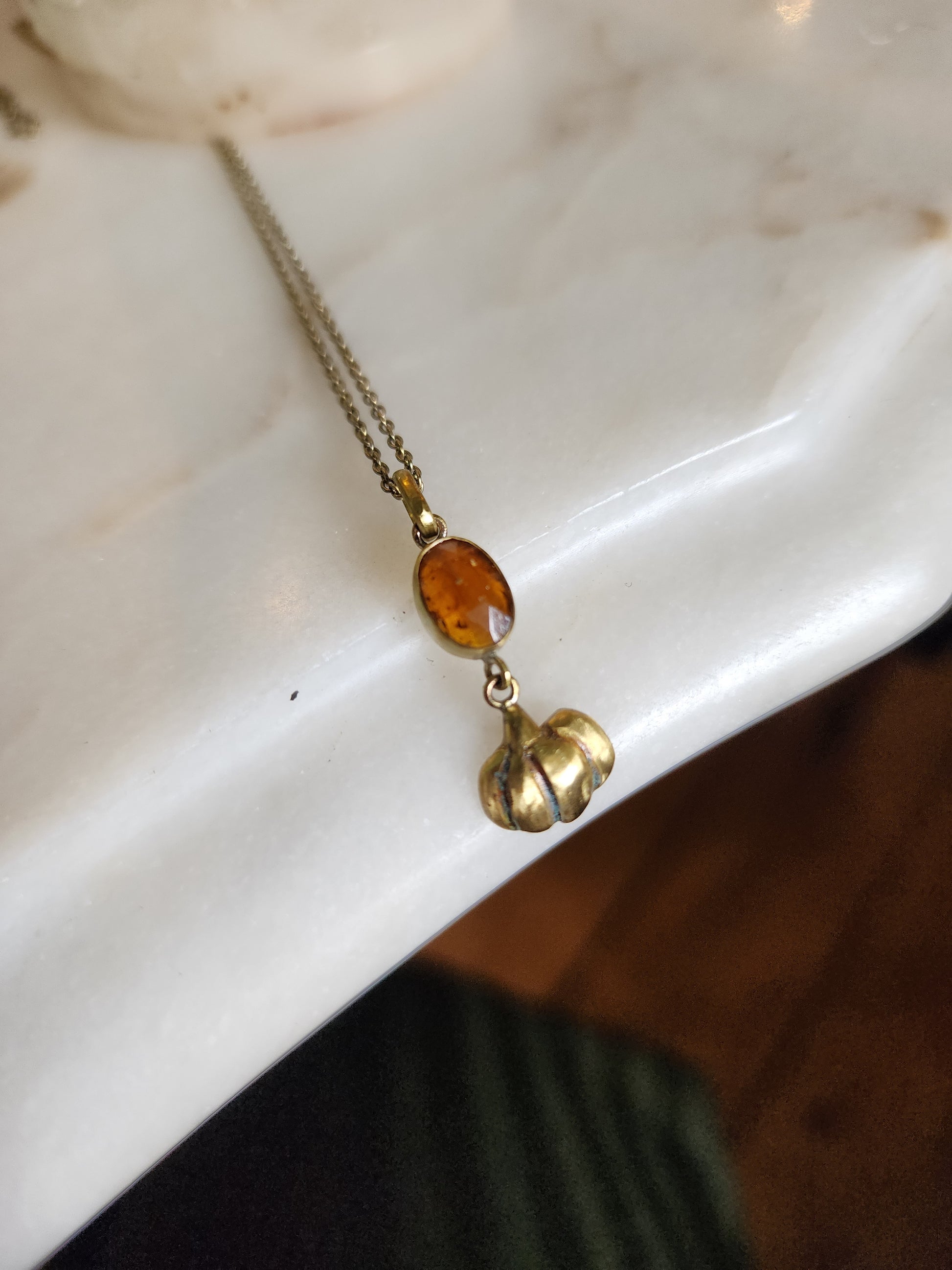 Dainty Pumpkin + Hessonite Garnet necklace