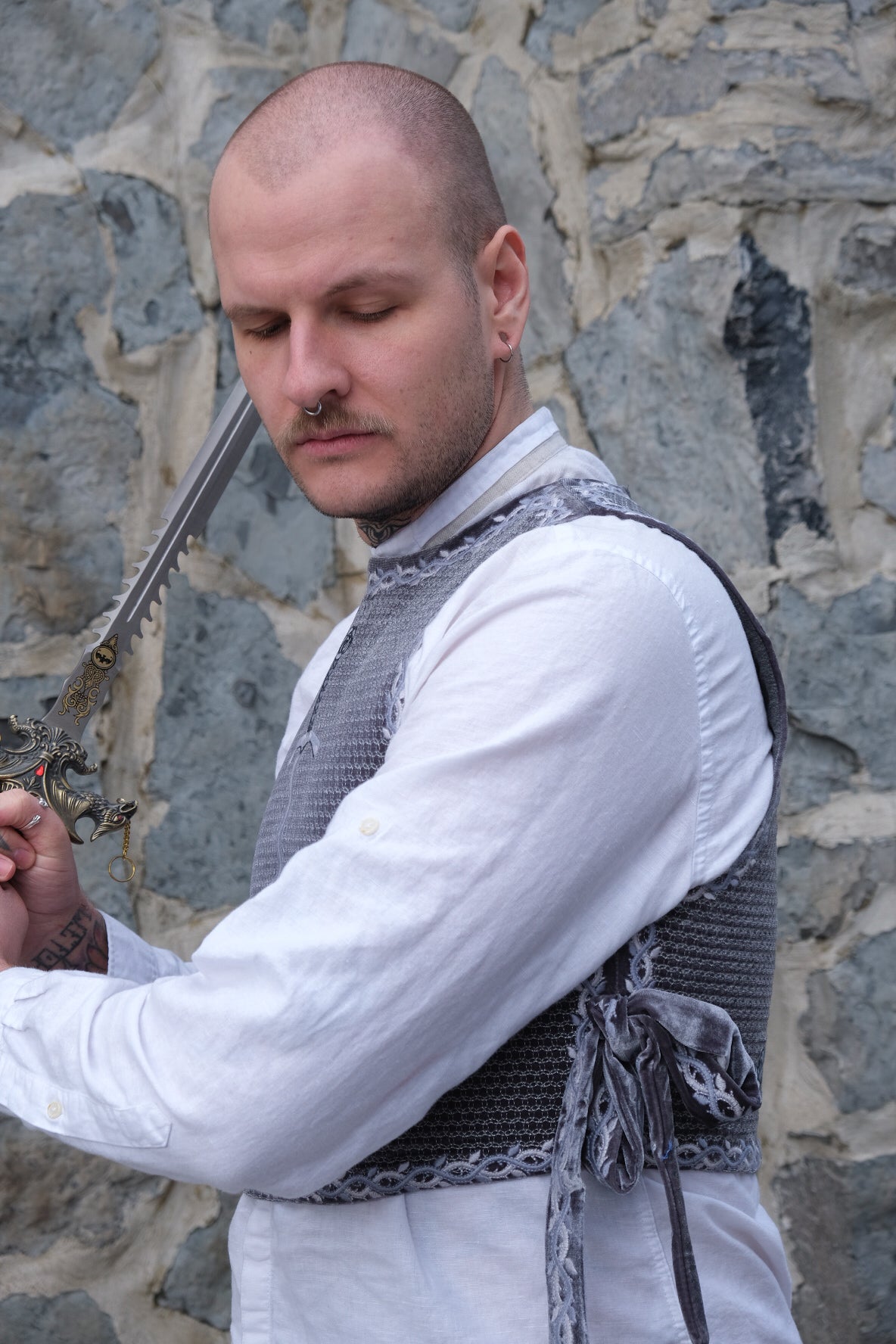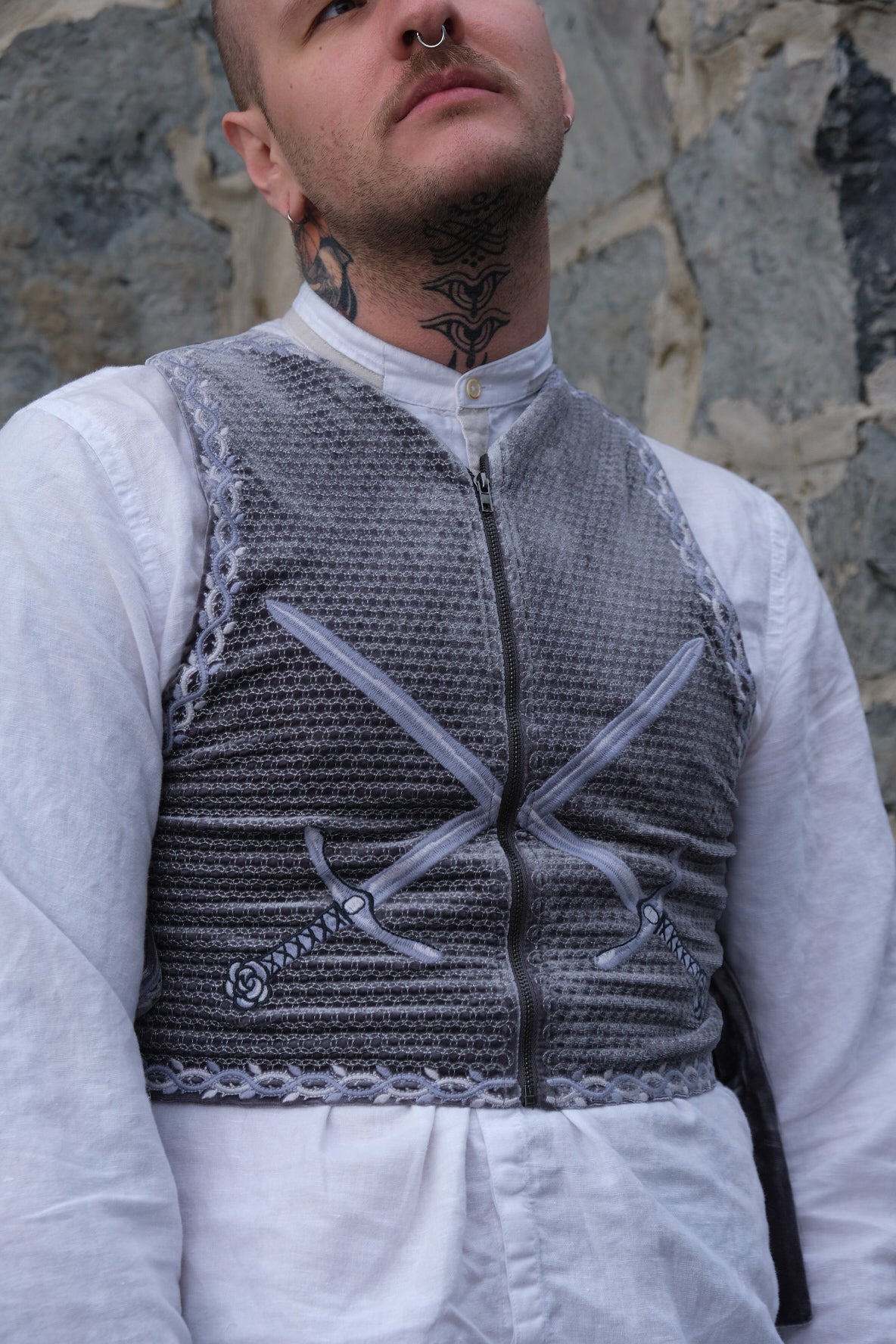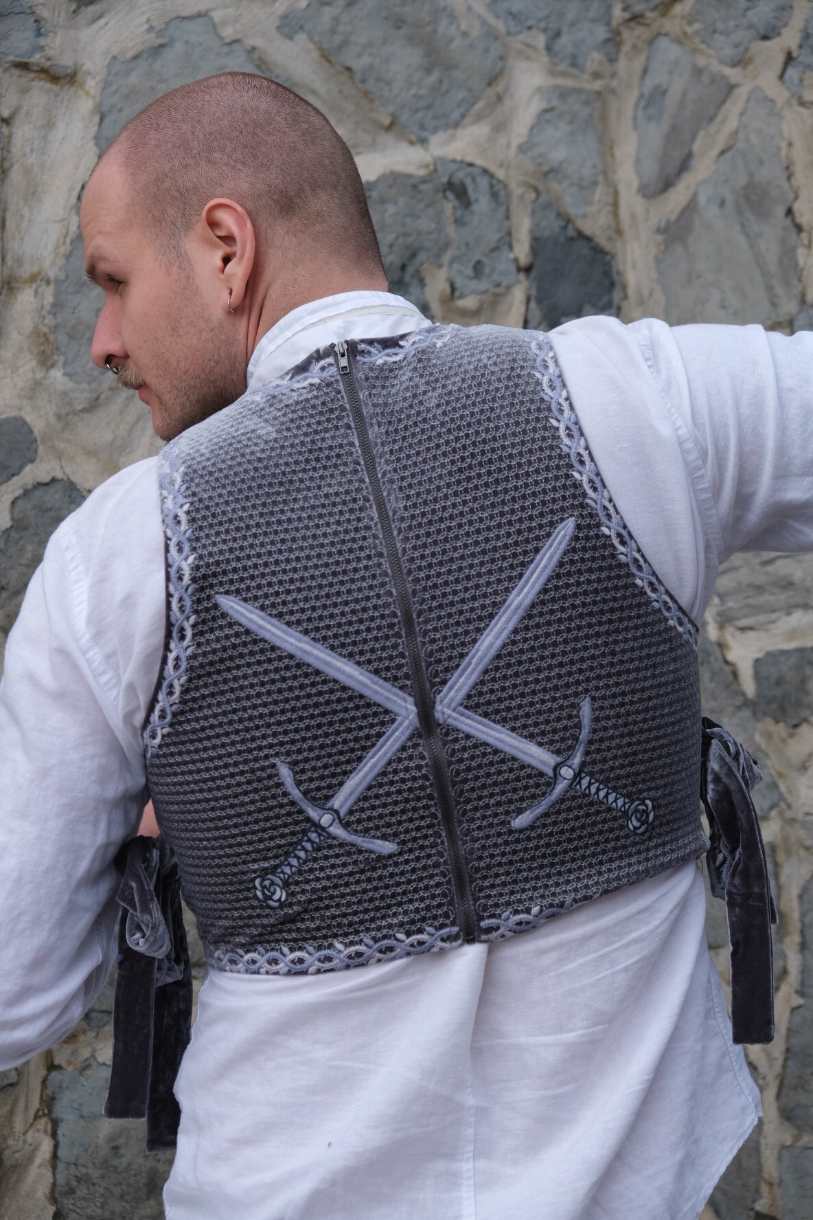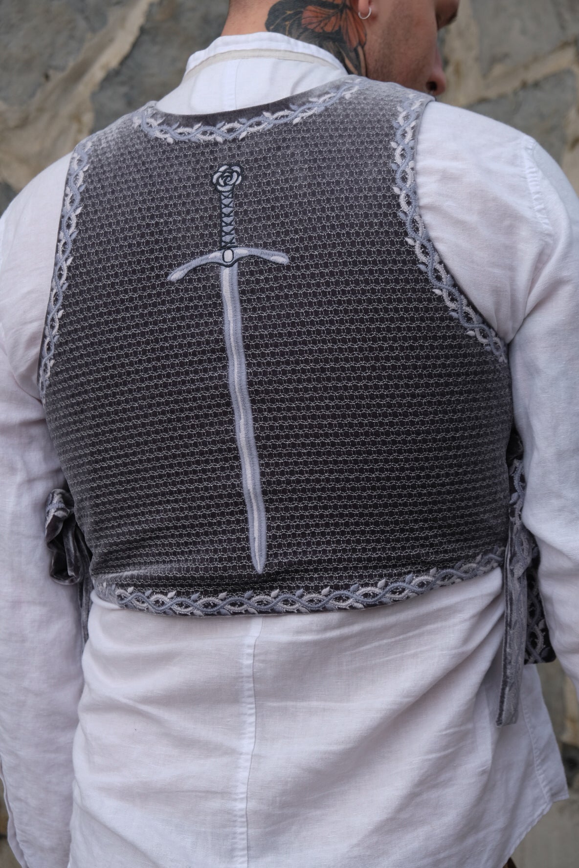 This shiny chestplate top is made of sumptuous velvet fabric and features chainmail & swords embroidery ⚔️