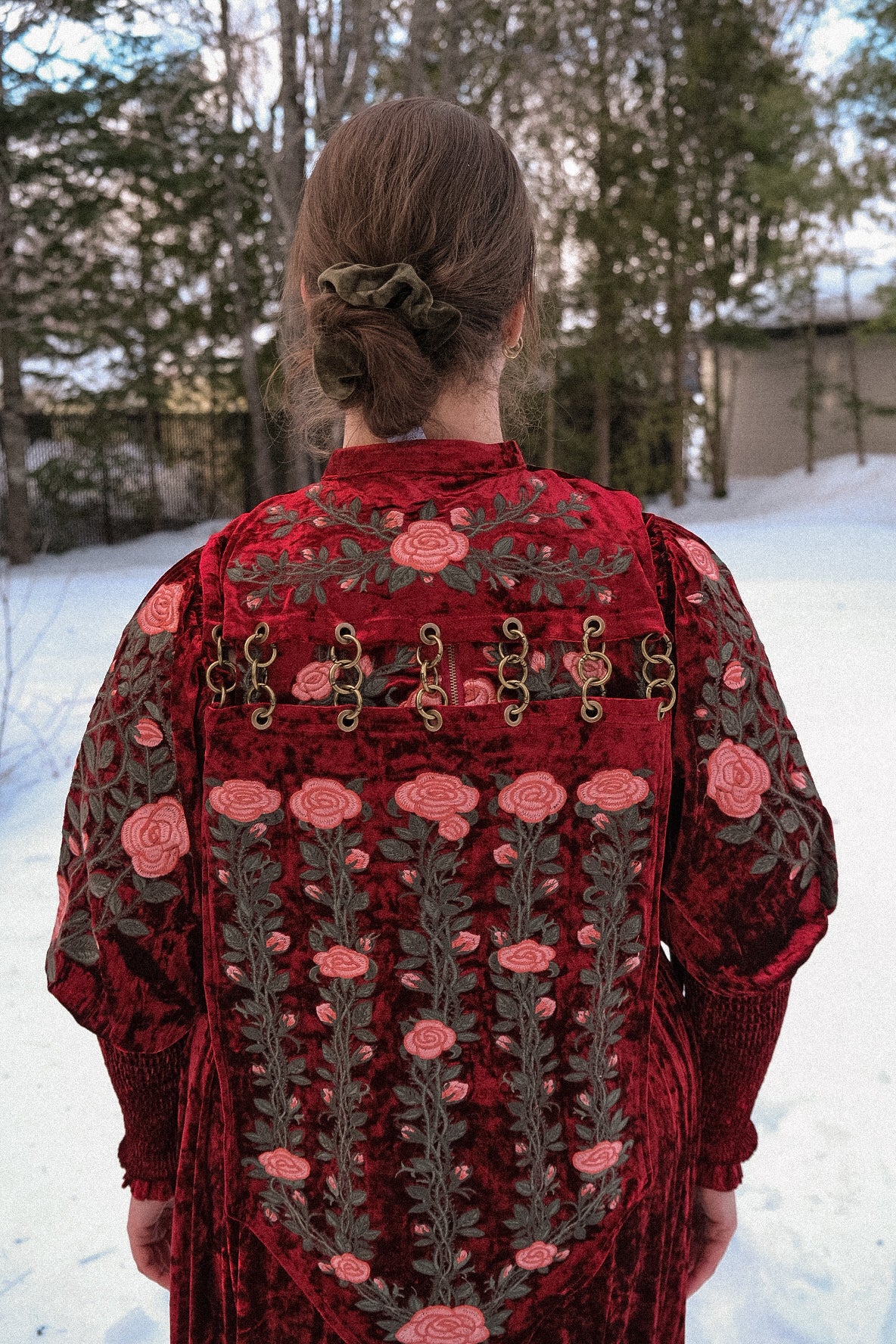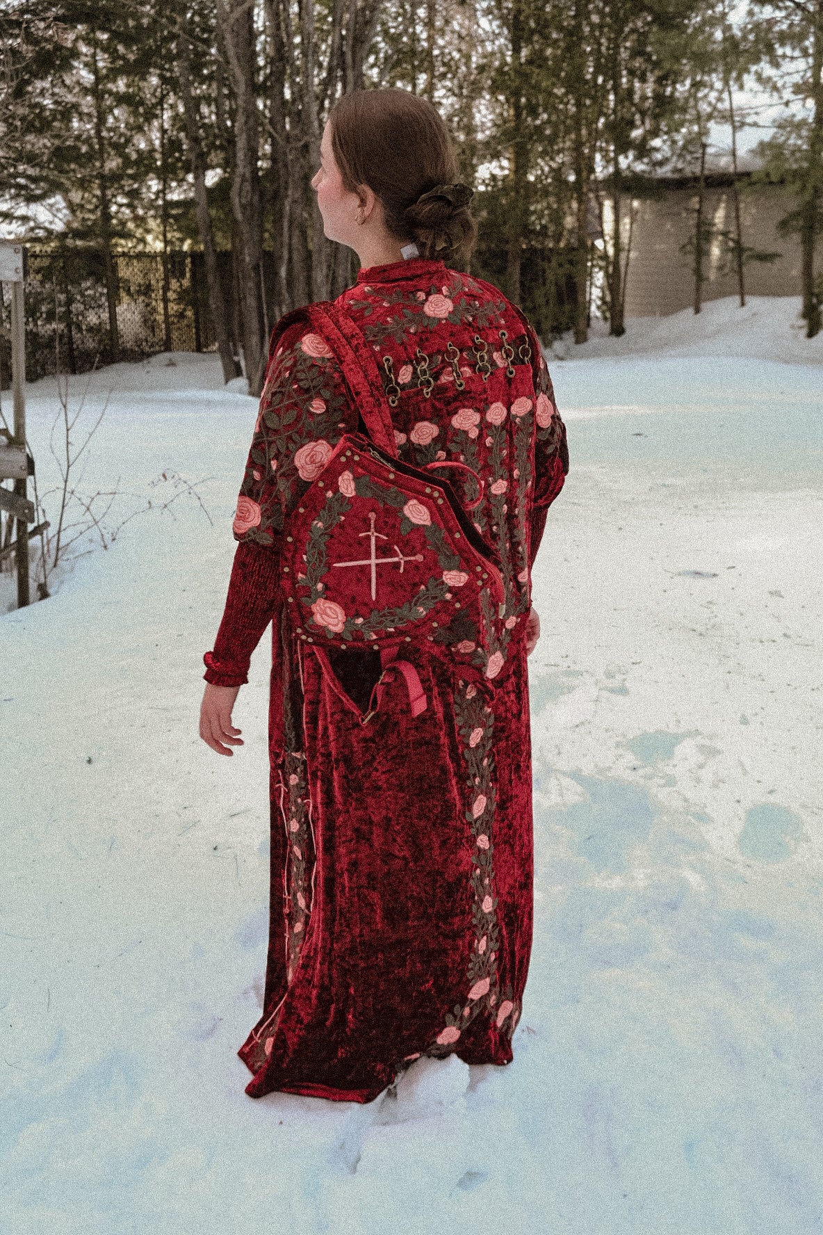 This shiny belt is made of sumptuous velvet fabric and features thorns + roses embroideries! ( and swords of course)