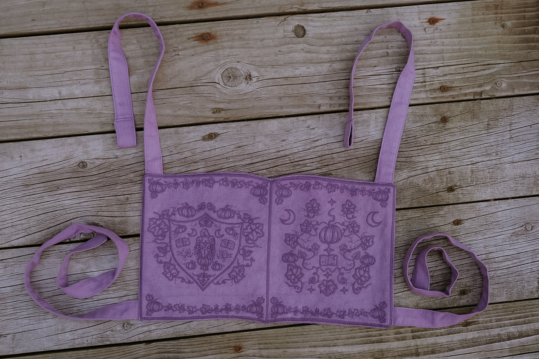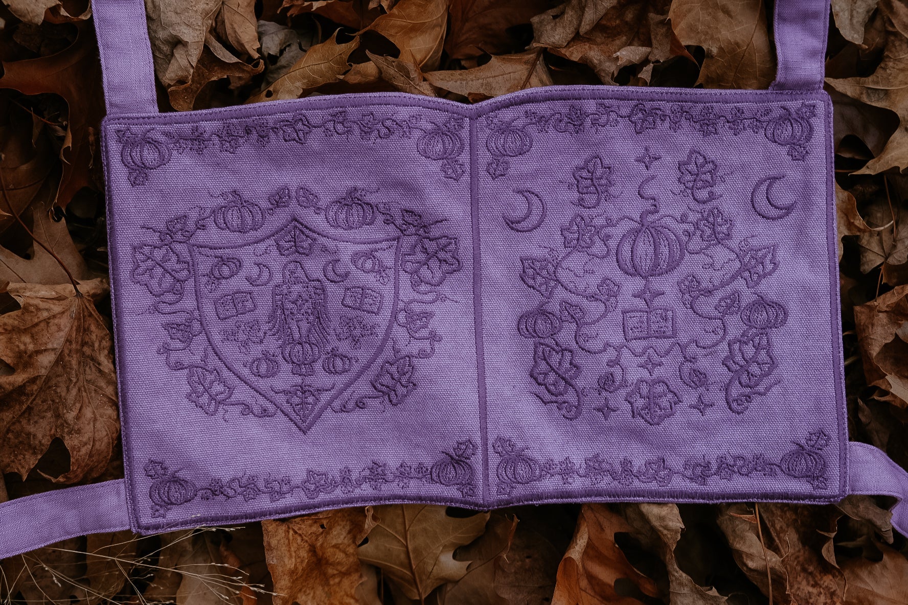 This lovely book of spells can be worn on both sides. It is a versatile piece that you can wear on your chest or back and get creative with! It is made of sturdy canvas fabric and is embroidered with cotton threads♡